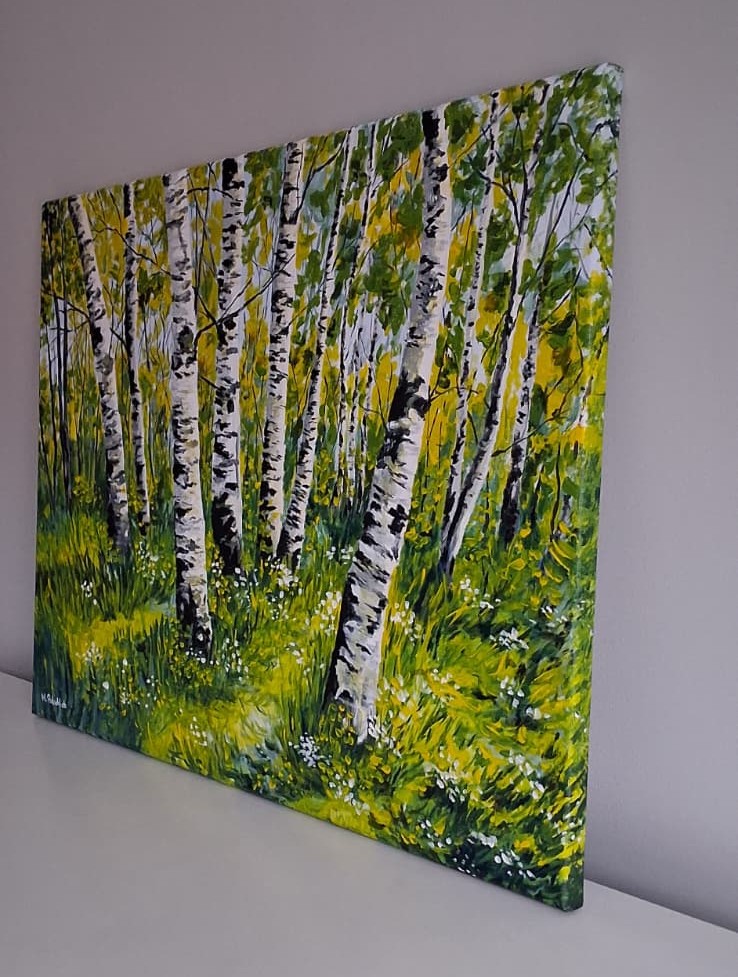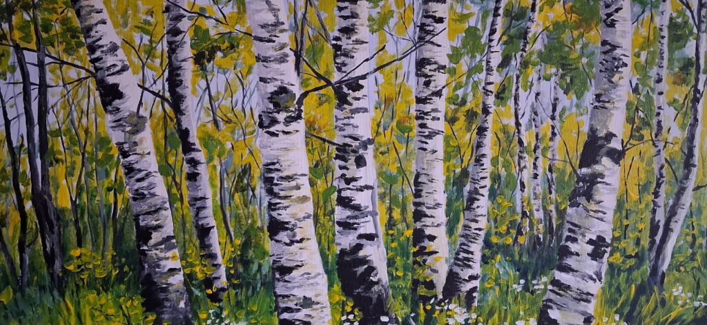 Niektóre obrazy zatrzymują chwilę, której nie da się uchwycić aparatem. Migotanie światła, lekki ruch liści, miękkie przejścia kolorów – wszystko to tworzy przestrzeń, do której można wracać spojrzeniem. Motyw brzozowego lasu od lat pozostaje jednym z najbardziej rozpoznawalnych i nastrojowych w malarstwie natury.